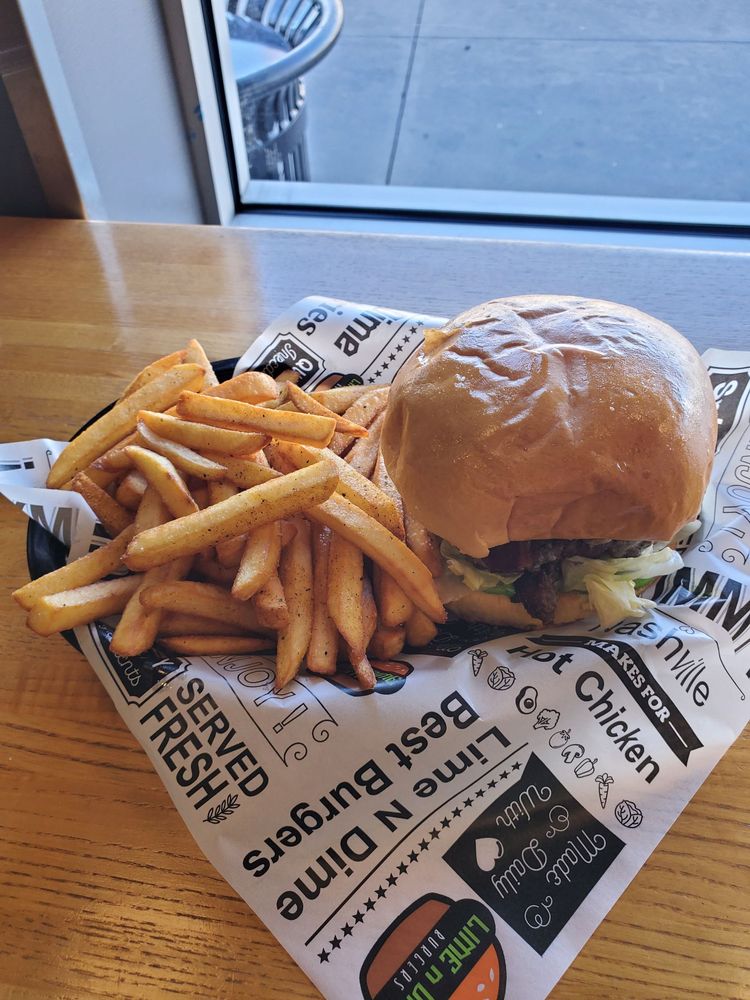 Lime n Dime offers amenities such as Takeout, Delivery, Wheelchair Accessible, Pets Welcome, Good for Groups, Free Wi-Fi, Accepts Contactless Payments, Takeout, Delivery, Wheelchair Accessible, ensuring a comfortable and convenient experience for clients.
